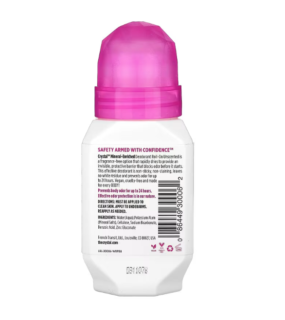 CRYSTAL, Mineral-Enriched Deodorant Roll-On, Unscented, 2.25 fl oz (66 ml)