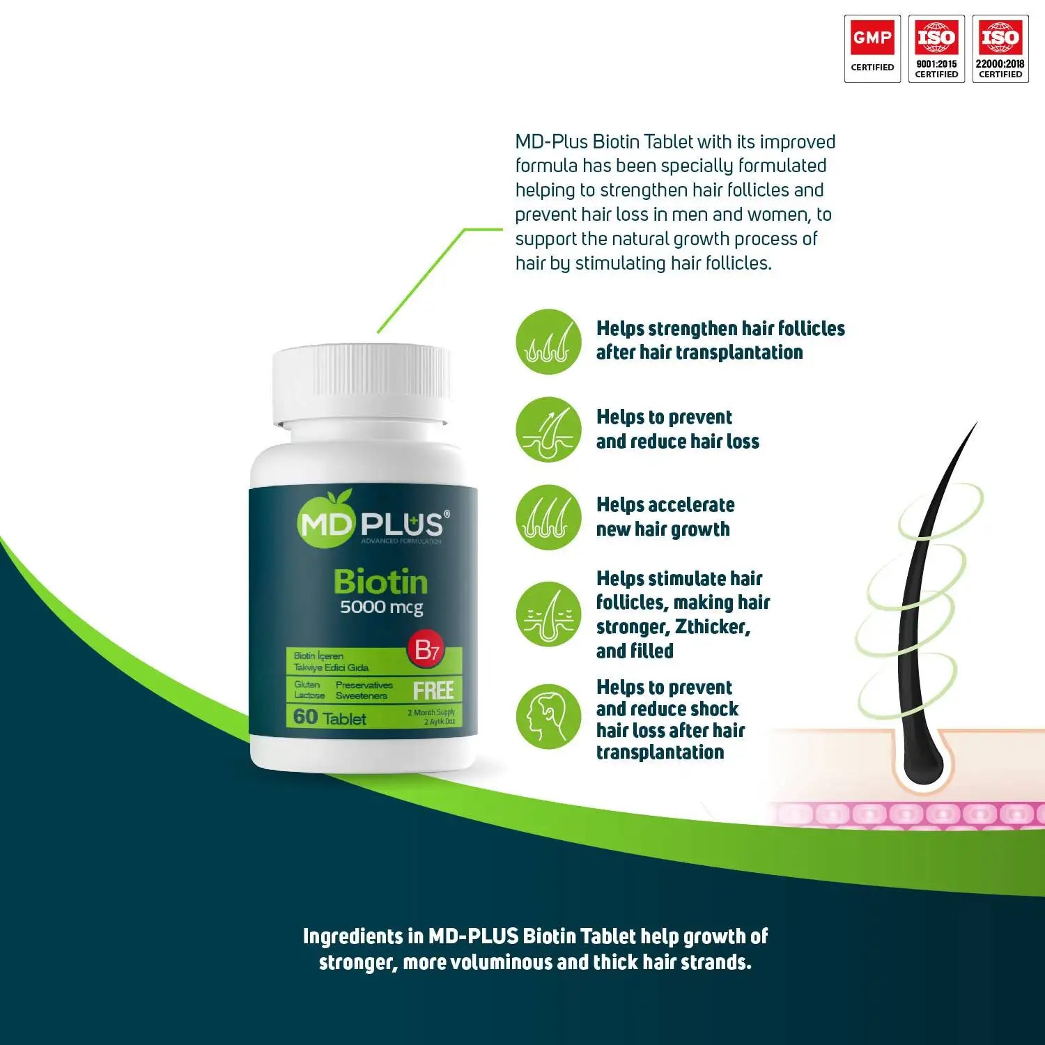 MD Plus Advanced Hair Biotin 5000 mcg 60 Tablet